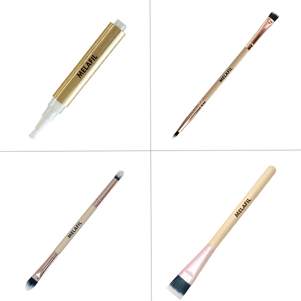 한쪽은 사선형 플랫 브러쉬, 다른 한쪽은 뾰족한 총알 브러쉬